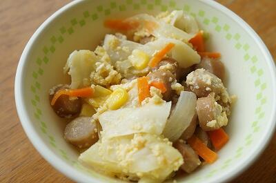 野菜の卵とじは、キャベツとウインナーのコラボが良かったですね~。こちらも美味しかったです(*^▽^*)