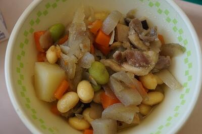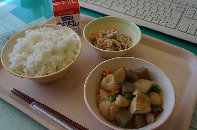 最後にのっぺい汁。この味付けが最高(*^▽^*)本当にいい味でした。何度も同じ感想になってしまいますが、うちの給食は最高ですよ(*^▽^*)