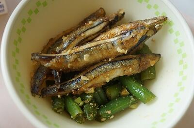 この和風定食のような感じがいいですよね~(*^▽^*)先ずは、きびなごの揚げ煮とインゲンのごま和えですが、きびなごがめちゃめちゃ美味かったですね~。甘辛く味付けされていて、ご飯のおかずにぴったりでした。その下に敷かれていたインゲンのごま和えもおいしい(*^▽^*)2つ合わせた彩りも良かったです。
