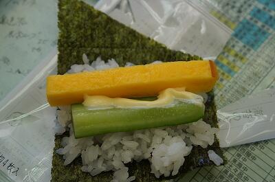 (酢飯・のり・キュウリ・卵・カニカマ・ウインナー・マヨネーズ)