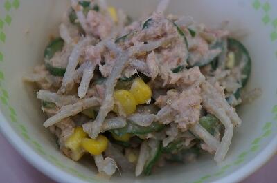 噛み応えありという点では、このごぼうサラダが1番ですね。ツナとごぼうのコラボが最高でした。