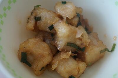 揚げ魚のねぎソース和えは、とてもねぎの風味が良く、サイコロ状に切った揚げ魚が一口サイズでとても美味しかったです。もう少し食べたかったです(>_<。)