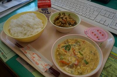 五目豆腐スープは、しょうがが効いていて、とてもおいしかったと、こちらも事務の先生が話していました。その通りです(*^▽^*)