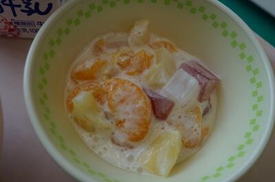 最後にフルーツヨーグルト。これは子どもたちからの人気が高いメニューです。人気を裏付けるおいしさでした。たくさんのフルーツに大満足です。