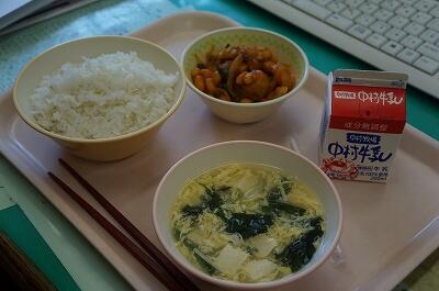 久しぶりに納豆が付きました。さすが、早寝・早起き・朝大豆の町ですね(*^▽^*)いつも違った形で大豆がおかずに使われていますが、本日は、ダイレクトにきましたね。国産パワーキッズです(^_^)v