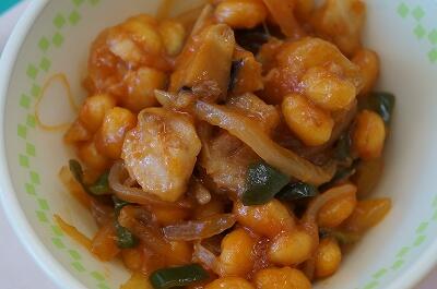 ● 魚と豆のケチャップ炒め