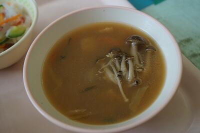 きのこの山里汁もたくさんのきのこがおいしいですね~。まさに旬の味です。みそもちょっと濃いめの味噌で、普段と違うみそ汁を味わうことができました<(_ _)>