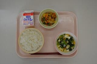 さつまいもは、江戸時代に中国から沖縄、薩摩(いまの鹿児島県)へと伝わってきたので、そう呼ばれるようになったそうです。さつまいもはビタミンCや食物せんいが豊富なので、おやつにもいいですね。今日は大豆と小魚の揚げ煮に入っています。さつまいもの甘みが食欲を増して、たくさん食べられますね。たくさん食べて下さいね。
