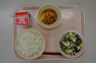 今日は、豚キムチご飯です。キムチとたくわんが入っているので、別名、キムタクごはんとも言われています。キムチは、朝鮮半島で生まれた漬物です。今日のように、白菜を使った白菜キムチ、大根を使った「カクテキ」きゅうりを使った「オイキムチ」などがあります。漬物としてはもちろんですが、豚キムチやビビンバ、キムチ汁など、給食でもいろいろな料理に使われていますので、楽しみにしていてくださいね。