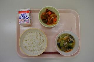 ぶた肉は、日本人が一番よく食べている肉類です。牛肉の2倍くらいの量を食べているそうです。日本では、明治時代に入ってからよく食べられるようになりました。豚肉には、つかれをとってくれる栄養が他の肉に比べてたくさん入っています。今日は豚汁の中にはいっています。しっかり食べて、つかれた体に元気を送ってあげましょう。