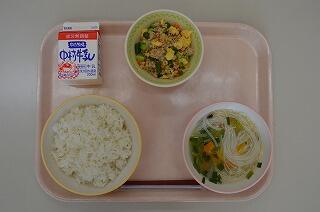 今日のスープに入っている「にら」は、疲れをとってくれるビタミンB1を多く含み、そのビタミンB1を体内にとどめておく成分も一緒にふくまれています。スタミナがつく、食べ物といわれています。にらスープを残さず食べて、午後も元気に過ごしましょう。