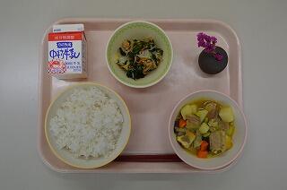 今日の豚汁に入っている豚肉には、ビタミンB1という疲れにきく栄養素たくさん入っています。しっかり食べて元気に過ごしましょう。