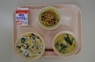 今日は、ささがきにしたごぼうがたっぷりはいったきんぴらごぼうです。ごぼうには、食物せんいが多くふくまれていて、お腹の調子を整えたりするのは、みなさん知っていることと思います。そんなごぼうですが、私たちが食べているのは根の部分です。この根の部分を日本人はよく食べています。そして、ヨーロッパの方では、ごぼうの若葉を食べるそうです。食文化の違いはおもしろいですね。