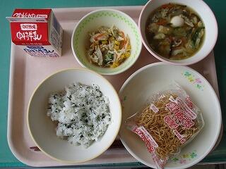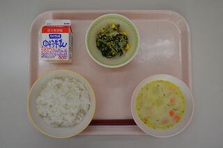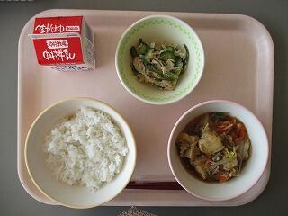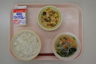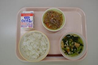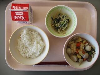 お腹がすくと元気がでなかったり、勉強に集中できなくなったことはありませんか?食べ物を食べると、たちまち元気になり、勉強に集中できるようになります。今日は今がとってもおいしい里芋を使ったすり流し汁です。ただ、お腹をいっぱいにしてくれるだけでなく、里芋には食物繊維がたっぷり含まれていて、お腹の調子を整えてくれる働きもあります。さつまいものように、あまい味ではありませんが、今日はつぶした里芋と卵を合わせて、すましじるの中に流し入れています。体がポカポカしてきて元気が出ましたか?午後からの授業もがんばれそうですね。