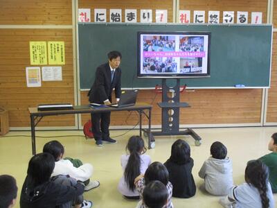 町内の5・6年生が、五ヶ瀬町のPRをするため、熊本学園大学へ行きました。1年生のころから豊かな体験活動で学んできたことを県外の方へ伝え、多くの人に五ヶ瀬のよさを知り、五ヶ瀬に来ていただきたいという思いでPRしました。子どもたちは、資料やPRの仕方を工夫し、大学生の関心を引いていました。PR活動後の子どもたちからは、やり遂げた達成感がうかがえました。