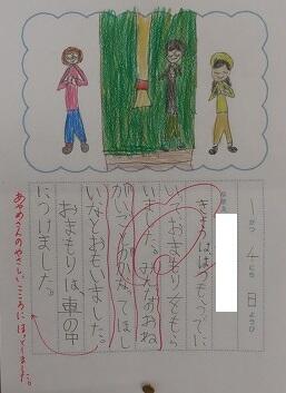 〇 児童名:1年生 西村 綾恵(あやめ)さん