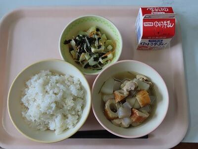 〇 減量わかめご飯、牛乳