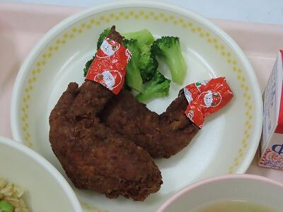気になる今日のメニューは、昨日の揚げパンに引き続き、子どもたちの人気メニュー・・・