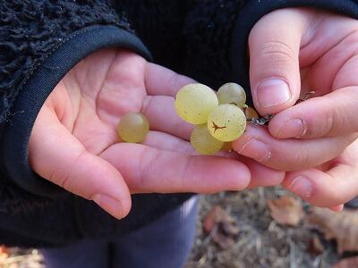 【もう収穫したの!?残っていたぶどうを見つけて大喜びでした。】