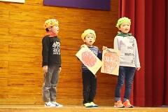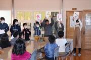 三ヶ所小学校の栄養教諭 大原先生にお越しいただき、給食に携わる方々や給食の歴史についてお話をしていただきました。子どもたちからは、大原先生と調理員の裕樹先生に、「KSK」(KyuSyoKu)の歌とダンスの発表と、感謝状が贈られました。