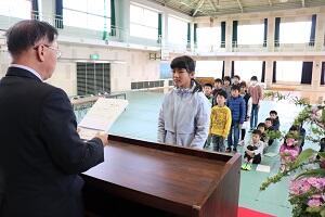 校長先生から修了証を手渡され、晴れやかな顔をしていました。