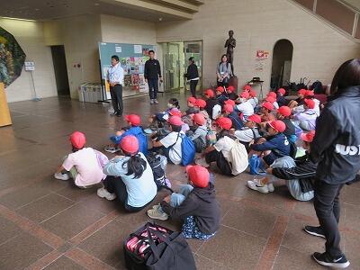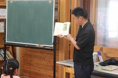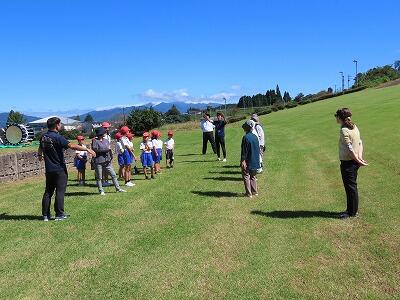 【「ちいちゃんのかげおくり」を体験中。空に映る自分の影を見て感動していました。】