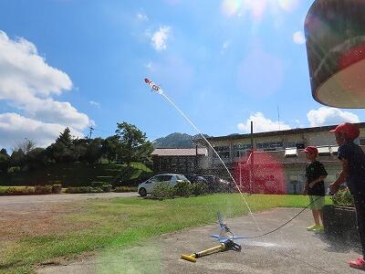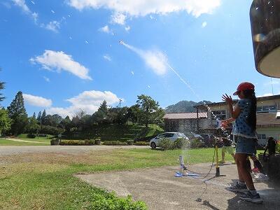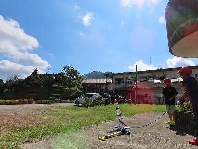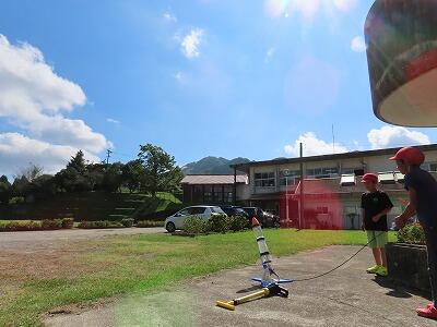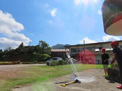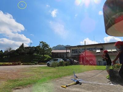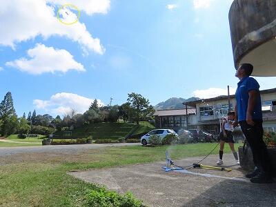 ペットボトルロケット「KAMIGUMI2号」を打ち上げます!(写真は昨年度「KAMIGUMI1号の打ち上げの様子です」)