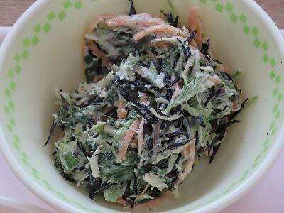今日の千切り大根のサラダは、マヨネーズで味付けをしていてとても食べやすくなっています。