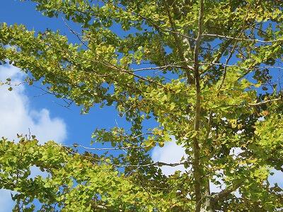 【運動場のイチョウも黄色く色づき始めました。】