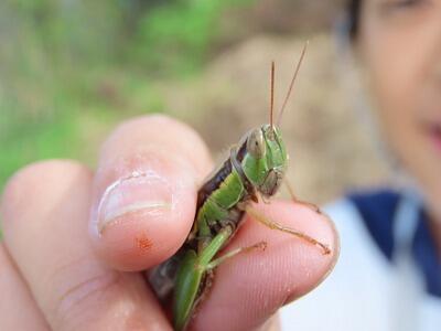 【バッタとり名人。(もちろん撮影したら、キャッチ&リリースです。)】