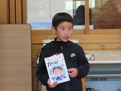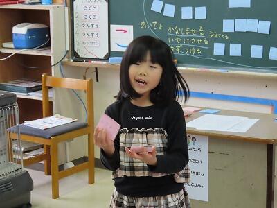 【感謝の気持ちを発表する1,2年生。】