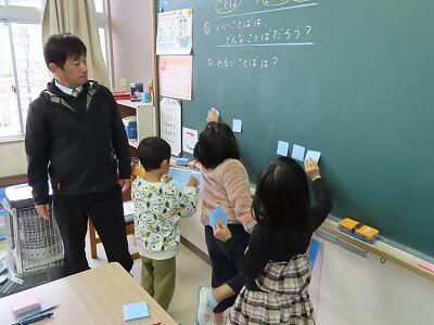 1,2年生教室から、楽しそうな声が聞こえてきたので行ってみると・・