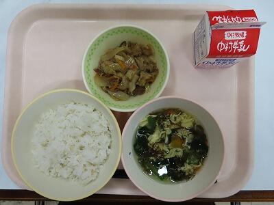 〇 減量わかめご飯、牛乳