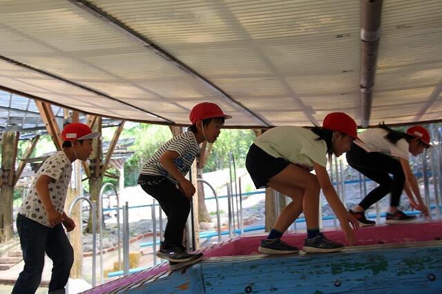 食べていました。昼食後も元気いっぱいアトラクションで遊ぶ子どもたちでした。