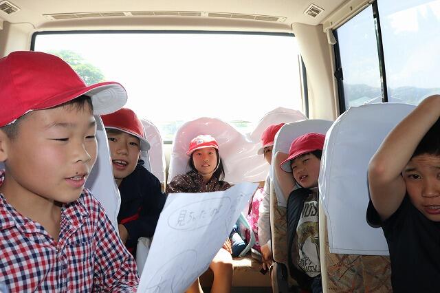 バスの中では、6年生が準備してくれたゲームを楽しみました。