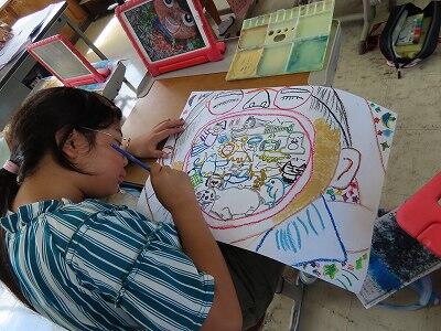 【3,4年生は図工。描いているのは・・・】