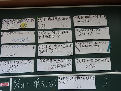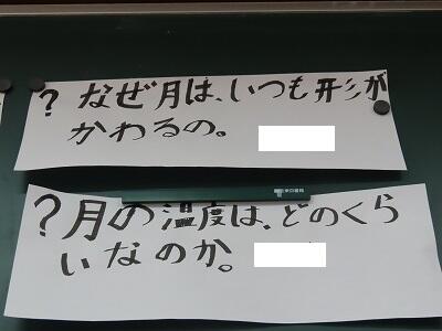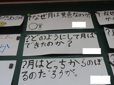 【月について、子どもたち自身が、調べてみたいこと、不思議に思ったこと、知っていることを出し合い・・】