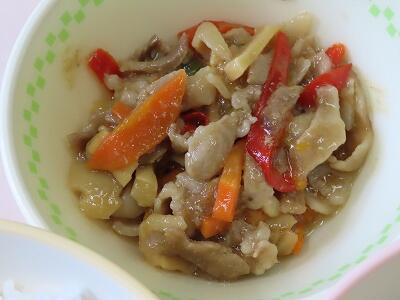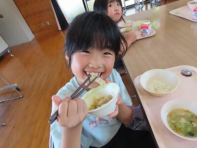 では、給食用にアレンジされた、とってもおいしい「豚キムチ」をみんな笑顔でいただきます。