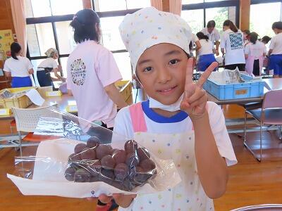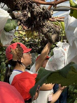一つ一つの粒が丸々と生長したぶどうに感動しつつ、ていねいに収穫していました。