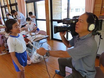 【テレビのインタビューにも堂々と答える上組っ子。ぶどうをしっかりアピールしていました。】