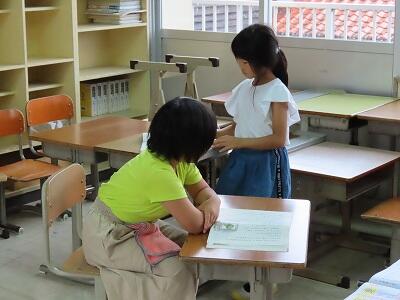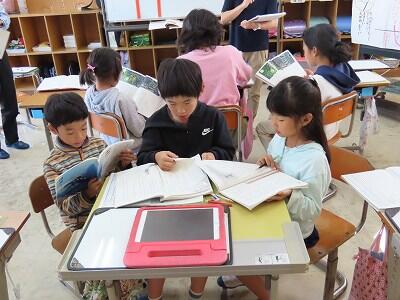 【2年生、国語、物語文を音読中】