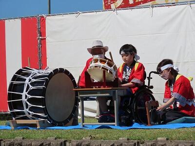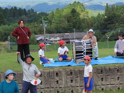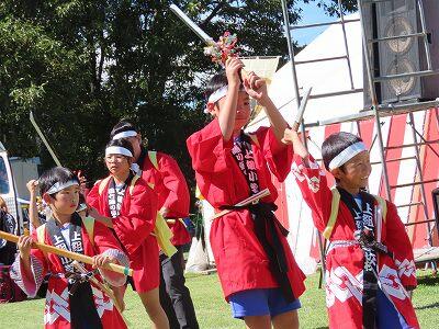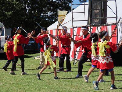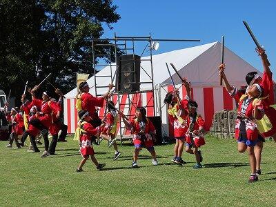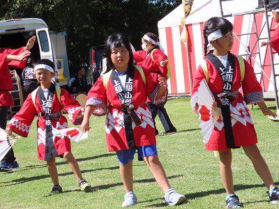 夕陽の里フェスタで「団七踊り」の有終の美を飾った子どもたち。