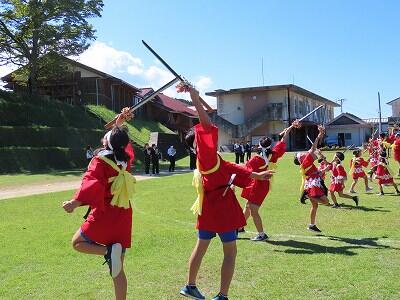 陽差しが強く、大変暑い中での披露となりましたが、児童、保存会・保護者の皆様の気持ちが一つになった、見応えのある踊りができたと思います。(私がこれまで見た中でも1番のできだったと思います。)