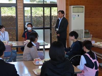 【給食後、教育長から、上組小に対して最大限のお褒めの言葉をいただきました。ありがとうございました。】
