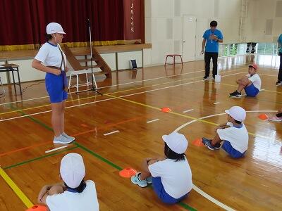 今回は、雨で運動場が使用できないので、体育館での練習に切り替えました。