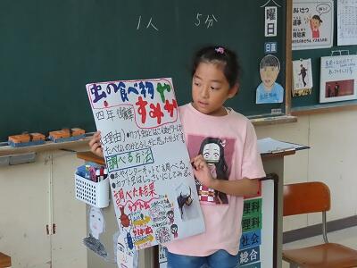 ただ読むだけでなく、ジェスチャーを入れたり、クイズにしたり、実物を掲示したり、一人一人工夫が見られる発表でした。