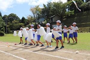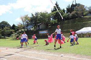 9月15日(日)、まだ残暑厳しい日でしたが、晴天のもとで秋季運動会を行うことができました。入場行進から保護者・地域の方が参加する桑野内地区の一大行事です。