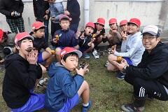 この日は、早朝から保護者が火起こしをしてくださいました。洗った後ぬれた新聞紙で包み、外からアルミホイルをかぶせて焼いたいもは、完璧な状態で焼き上がりました。子どもたちは大満足でしたし、私(執筆者)も、こんなに焼きいもがおいしいと思ったのは初めてでした。