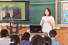 12月13日(金)の5校時、今回は鞍岡にお住まいの藤木浩美さんにお越しいただきました。藤木さんは町内ご出身の方で、若い頃福岡の学校に通われ、地元に戻ってこられたそうです。そして、料理家の道を志し、現在はイタリア料理研究家1級等、数々のライセンスを取得されています。