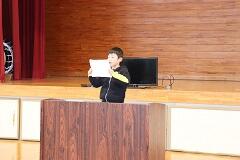 本日、24名全員揃って終業式を終えることができました。1年生の代表児童が、2学期にがんばったことを堂々と発表しました。この児童の駅伝大会の大健闘をはじめ、みんながそれぞれに大きく成長した2学期でした。